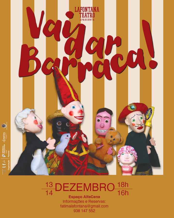 O espetáculo comunitário “Vai dar Barraca!” reúne uma família especial, com alguns dos descendentes diretos do Polichinelo Napolitano, uma personagem pertencente ao universo da Commedia dell’Arte, um teatro tradicional europeu que teve o seu auge na Itália renascentista. Na nossa história, os parentes encontram-se para o funeral do avô Pulcinella, que acontece em Vila do Conde, Portugal. Nesse encontro, acontecem muitas peripécias, instala-se o caos e abundam as confusões, em cenas hilariantes, como costuma ser o quotidiano dessa família tão especial.