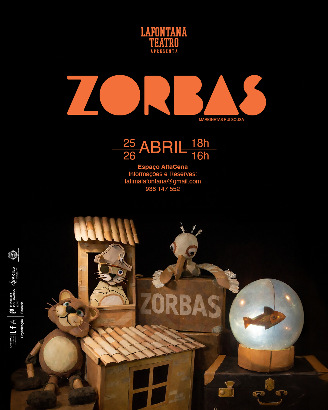 Inspirado na obra literária de Luis Sepúlveda “História de Uma Gaivota e do Gato que a Ensinou a Voar”, o espetáculo acompanha Zorbas, um gato de porto cuja rotina tranquila entre telhados, janelas e dias ao sol é inesperadamente transformada quando promete cuidar do último ovo de uma gaivota vítima da poluição do mar e ensinar a sua cria a voar. Entre o instinto e a palavra dada, Zorbas percorre um caminho de descoberta, afeto e responsabilidade, aprendendo que amar também significa confiar e saber libertar.